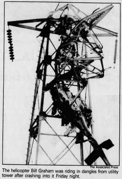 La madrugada del 25 al 26 de octubre de 1991 fallecía Bill Graham en un accidente de helicóptero en Vallejo, California, mientras regresaba a casa de un concierto de Huey Lewis and the News en el Concord Pavilion . El vuelo se produjo en condiciones climáticas adversas, con lluvia y vientos racheados, la aeronave voló fuera de curso y demasiado baja sobre la marisma al norte de la Bahía de San Pablo, directamente a una torre de alto voltaje de 223 pies (68 metros). El helicóptero estalló en llamas en el impacto, matando a Graham, al piloto Steve «Killer» Kahn y la novia de Graham, Melissa Gold. Los restos carbonizados del helicóptero colgaron en la torre durante más de un día. Graham, de procedencia alemana, se convirtió en uno de los empresarios musicales más importantes de los Estados Unidos.