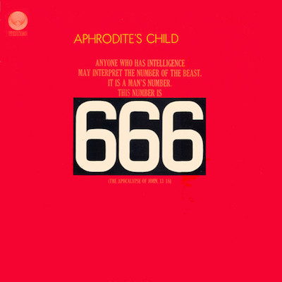 DISCOS DEL LADO OSCURO 5 Aphrodite’s Child 666 Maravilloso tercer álbum de la banda griega Aphrodite’s Child, liderada por Vangelis y Demis Roussos, con la colaboración del cineasta Costas Ferris que escribió los textos. Una obra maldita desde su concepción. Se trata de una recreación de la Biblia y el Libro de la Revelación. Polémica…