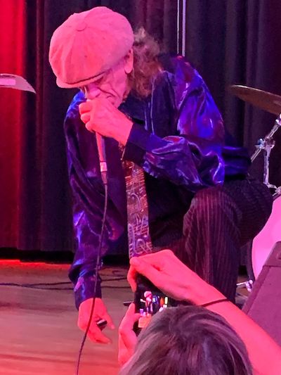 Una actuación de algo más de hora y media que nos supo a poco y no me equivoco si apunto que la mayoría de los presentes hubiéramos permanecido en el local durante un buen puñado de minutos más y que él, lo hubiera aguantado sin problemas, pues su estado físico quedo demostrado que es excelente. Saltó, bailó, casi rapeó al principio, lanzó patadas, jadeo al respetable que necesitaba poco para ponerse a berrear como posesos, salto a la olla y se paseó con su armónica hasta donde le cortó la libertad la longitud del cable del micrófono, todo ello aderezado con un maravilloso sentido del humor y su castellano peculiar y bonachón que enamoró a los que no le conocían, que haberlos ahílos.