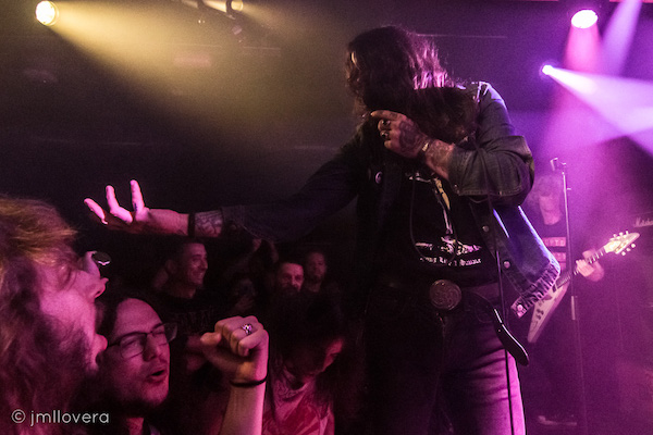 Mi primera vez en la nueva sala del Eixample y con la salvedad del aire acondicionado demasiado fuerte y la cerveza a precio de Moet Chandon se me antoja perfecta en todos los sentidos para los grupos de pequeño/mediano aforo. No presentaron material nuevo, pero están preparando ya su nuevo disco de estudio. Por tanto, se dedicaron a repasar sus ya lejanos «Rise of the serpent» (2018), «Full moon in scorpio» (2017) y «The Wizards» (2015), joyas del metal patrio. Heavy Metal sí, pero más Heavy que Metal, tienen querencia hacia el Doom o a los Iron Maiden más guarros, los de Paul Di’Anno. Las versiones escogidas (Pentagram y Danzig) son una muestra de su gama estilística y las camisetas que lucían Ina y Felipe (Poison Idea y Zeke respectivamente) dan cuenta de su amplitud de miras y su difícil encasillamiento en un género determinado, lo que los hace mas interesantes.