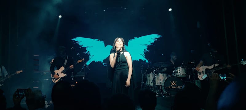 Concierto perfectamente estructurado, con sus debidos cambios de vestuario, sus subidas y sus bajadas y con luces y proyecciones muy apropiadas según el tono de las canciones. Empezó en modo íntimo y tras la citada «11 past the hour» cayeron «Levitate», una emocionante «Black tears» y «Breathe». El dominio escénico del que hacía gala Imelda era pasmoso, a una voz perfectamente modulada se le sumaban unas dotes interpretativas excelsas. Una gozada verla gesticular, alzar los brazos, subrayar sus palabras mediante lenguaje corporal y poner el alma en cada nota. Tras un breve interludio en el que pudimos escuchar por el equipo de sonido a Imelda recitando uno de sus poemas sacó su vertiente más pop con «Just one kiss» a la que siguió una de las pocas concesiones a su pasado rockabilly con «Big bad handsome man» y una sugerente «Sixth sense». El siguiente tramo fue el más introspectivo y personal, con nuestra protagonista explicando de manera muy natural como compuso las canciones que iba interpretando: el miedo a enamorarse, la pérdida el año pasado de su madre, su curiosidad innata y su voraz apetito literario por ejemplo. Destacar de esta tanda «Human» y «Longing». Perfecta ella y la banda en todas las facetas, encararon la recta final antes de los bises con ese temazo de sus comienzos que es «Johnny got a boom boom» y con «Made love» pusieron a toda la sala a bailar. Tras «Mayhem» se retiraron para volver a salir y entonces fue cuando Imelda compartió con nosotr@s unas vivencias que tuvo con su buen amigo Meat Loaf, recientemente fallecido, al que honró con una impresionante «I’d do anything for love» (but I won’t do that)». Como traca final una siempre efectiva «Tainted love» y una espectacular «Diamonds» tras la cual nos dejamos las manos aplaudiendo mientras un sector del público no cesaba de gritarle «guapa» con tal fervor que pareciese que estuviésemos en el Rocío e Imelda fuera la mismísima virgen.