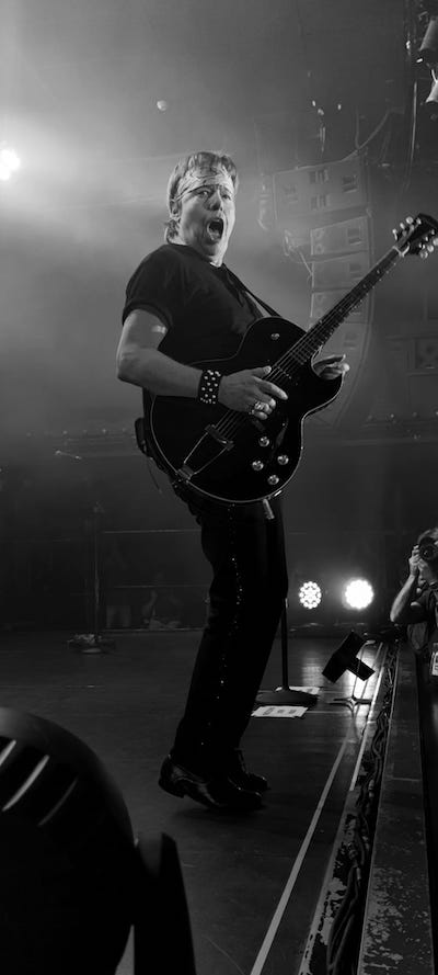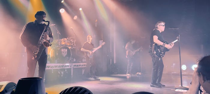 Empezaron la descarga con «Rock party» de título poco inequívoco, y ya a los primeros compases las Estrellas con las que nos refrescábamos empezaron a tener gusto a Budweiser y las centenarias paredes de la Apolo se transformaron en los muros de un garito motero de Texas o de un club de Blues de Chicago. Tras una serie de versiones llegó el turno de la propia «I drink alone», perfecto preludio de uno de los momentos álgidos del show con la original de Amos Milburn «One bourbon, one scotch, one beer», un clásico de la banda aunque no sea suya. No faltaron, como no podía ser de otra manera, sus cantos al lado salvaje de la vida «Bad to the bone», poco antes del bis, y «Born to be bad», con la que se despidieron, intercaladas con una marchosa versión del «Tequila» de THE CHAMPS y el «Move it on over» de HANK WILLIAMS. Asimismo hubo momentos también de pura jam bluesera en la que la banda funcionaba como un reloj suizo al tiempo que el saxo aportaba el groove perfecto para los desfases guitarreros de George, pleno de energía durante todo el bolo y exhortando al público a rockear duro con las maneras del que sabe exaltar a una audiencia.
