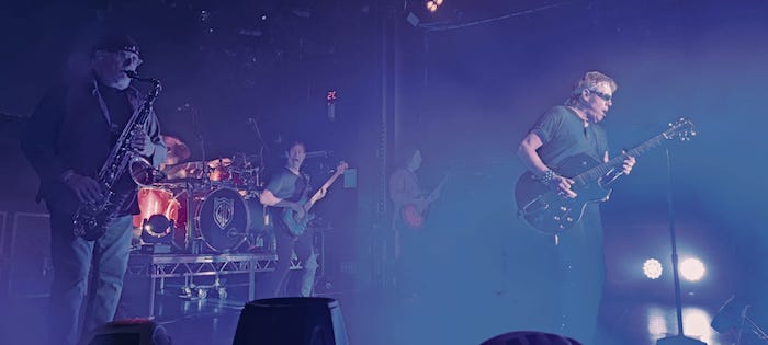 Cuando faltaban veinte minutos para las nueve de la noche, las luces y la voz de un speaker tipo combate de boxeo nos anunciaban que aquello arrancaba, enseguida se materializaron delante nuestra George y sus muchachos. Bastante bien de físico a sus setenta y dos primaveras, el bueno de George quizá no tenga la voz de antaño aunque este hecho pasa a secundario ante el torrente de energía y actitud que desplegó durante la casi hora y media de recital. Repito: setenta y dos años. Y sin overdubs ni coros grabados ni mierdas que esto es Rock n’Roll, hostias. El dominio del instrumento pasmoso, toda una vida dando conciertos, especialmente en el exigente y muy competitivo mercado americano se nota. Y un repertorio, con una sabia combinación de temas propios y covers de referentes básicos del Blues y del Rock como BO DIDDLEY o THE SONICS, que tiraba de espaldas.