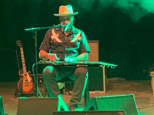 Cambiamos de escenario y justo detrás de donde actuó la 4B, tras otra barrera de bombillas, teníamos otro entarimado que acogió el concierto de Martin Harley Band. Y aquí vamos a hacer lo que nunca se debe ladrar en público si uno quiere ser in, pero como ni lo pretendemos y mucho menos lo conseguimos, pues no poseemos los requisitos imprescindibles de pedantería, egocentrismo y mucho menos echonería, seremos sinceros al afirmar que no teníamos ni puta idea de quién era hasta que no apareció en el cartel, pero en un mundo con internet, donde lo que no es mentira, no ha sucedido jamás, encontramos algunos discos del Martin y nos quedamos gratamente sorprendidos.