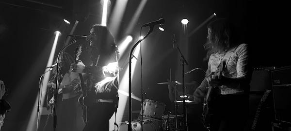 La Bretaña francesa, tierra famosa por sus castillos medievales y sus crepes y lugar de origen de esta joven y muy prometedora banda. Tengo que confesar que desconocía la existencia de este grupo hasta ayer por la mañana, al jefe JLBad le era imposible asistir y nos pidió que cubriéramos el bolo, así que nos plantamos en La Textil a la hora anunciada, no sin antes pegarle un par de escuchas en el Spoti a su primer y único disco publicado hasta la fecha «Nasty habits» (2021) que la verdad es que suena muy bien, aún transitando por senderos musicales previamente recorridos por centenares de bandas, de alguna manera consiguen sonar frescos. Beben de muchas fuentes, sobre todo del glam rock inglés, SWEET, SLADE, el Bowie de la época con las arañas de Marte y demás con un toque también del high energy escandinavo.
