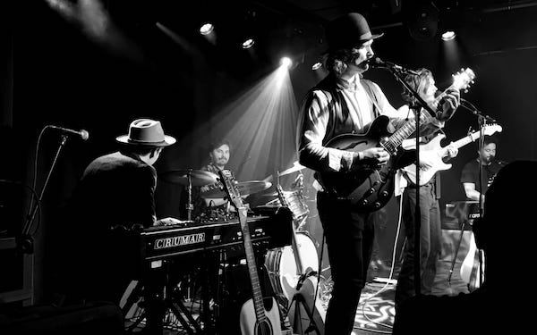 Con estas referencias, con el maravilloso disco citado bajo el brazo y ungido de grandes halagos por parte de la prensa especializada, se presentaba acompañado de una numerosa banda con dos teclistas en el búnker del Eixample. Nada más empezar el bolo me tuve que girar a la mesa de sonido para comprobar que no nos la estuvieran metiendo doblada poniendo un CD en el reproductor de lo perfecto que sonaba todo, potente, limpio y con la alucinante voz de Jesper en primer plano, aquello era para estar allí, las palabras no hacen justicia, seguramente el mejor sonido que he escuchado hasta ahora en La Textil, y llevo unos cuantos. Y si nuestro protagonista cantaba como los ángeles, la banda no le iba a la zaga, uno de los teclistas se destapó como gran vocalista cantando partes de «Twilight» y el bigotudo guitarrista que secundaba a Jesper dio también una exhibición en lo vocal, amén de manejarse con mucha solvencia con el violín y con la trompeta en algunos temas.
