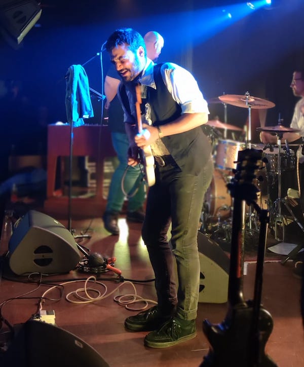 Bromas aparte, l@s presentes tardamos poco en darnos cuenta de que aquello iba en serio y en cuanto arrancaron pudimos comprobar (otra vez) el pedazo de voz que tiene el bueno de Jona, posiblemente la mejor de la escena local. La banda pletórica también, interpretando fielmente los temas pero llevándolos un poquito a su terreno rhytmnbluesero y sin caer en farragosos desarrollos instrumentales, excepto quizás en algunas partes de solos con el teclado. Una base rítmica sin fisuras y un gran trabajo de Héctor a la guitarra. Tras «Maybe I’m a Leo» con ese riff tan brillantemente ejecutado llegó el turno de «Pictures of home», la cual introdujo Jonathan explicando cuanto le gusta la letra y lo mucho que le recuerda a sus años mozos en los que vivía inmerso en lecturas de Tolkien y «Dungeons and dragons», canción que también le dio pie a Fernando a realizar uno de esos solos de teclado que se me hicieron un poco largos aunque tocase muy bien.