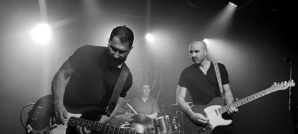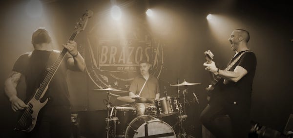 LOS BRAZOS son un power trío arquetípico, únicos e indivisibles. Cada miembro aporta lo mismo, ninguno sobresale por encima del otro. Crean entre los tres una poderosa sinergia que los convierte en algo muy especial de ver. Y en lo personal, al igual que otros tríos perfectos de la historia, no te imaginas ningún añadido ni cambio en la formación. Ya no serían LOS BRAZOS, serían otra cosa. Al igual que no cabe en ninguna cabeza que CREAM no fuesen Eric, Jack y Ginger o que THE POLICE no estuvieran compuestos por Sting, Andy y Stewart. Pues lo mismo, el entrañable William Gutiérrez a la voz y guitarra con sus alocuciones, todo corazón, entre tema y tema, el simpático y vacilón Txemi Gándara dándole al bajo Fender sin púa, que por algo son de Bilbao, y el socarrón Kokino Chamorro llevando fantásticamente el ritmo a la batería conforman este monstruo musical de tres cabezas que son uno de los secretos mejor guardados del Rock de este país a juzgar por la inexplicable poca cantidad de gente que arrastran a sus bolos (la última vez en Rocksound no éramos más de treinta).