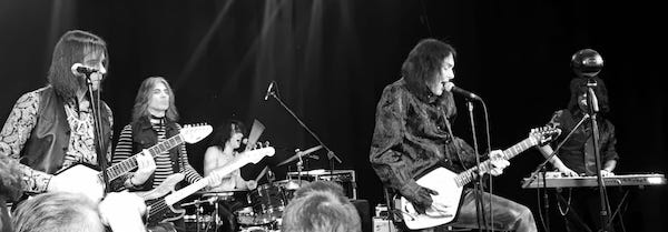 En cuanto al setlist pocas sorpresas, sus no por esperadas menos celebradas versiones de oscuros grupos de los sesenta como ? & THE MYSTERIANS, THE HAUNTED o THE SHY GUYS, combinadas con su material, clásicos como «Ward 81» o «Romilar D», antes de la cual Rudi hizo una de sus frecuentes apologías de las drogas, «Look for the question mark» o «Action speaks louder than words». Al autodenominado «adolescente más viejo del mundo» le queda cuerda para rato y se manejó muy bien tanto a la guitarra y armónica como a las voces en un concierto que se alargó hasta más de hora y media de duración, terminando, como no podía ser de otra manera, con su famosa version de «Strychnine» de THE SONICS ya pasada la media noche, lo que hizo que nos perdiéramos el último metro, y hay que recordar que la Upload está en la montaña de Montjuic, una chica me comentaba en el concierto de DEWOLFF que tuvo que coger dos buses nocturnos y que llegó a su casa a las tantas. Normal.