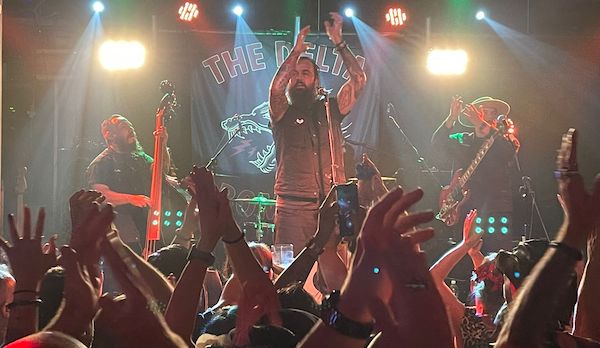 Los chicos de Las Vegas, que comenzaron en 2008 queriendo ser una banda de rockabilly, han pasado página y en todos sus discos, cinco álbumes hasta la fecha, lo único que está claro es que es una mezcla de sonidos difícil de clasificar, pero de rockabilly les queda nada más que el espíritu. La guitarra de Andrew Himmler suena a rock clásico, blues y con rebozados de tex-mex en ocasiones. Su Gibson, mismo modelo que utiliza Angus Young, nos lanza ráfagas de rock y blues pantanoso, mezclado con su afición por la música jamaicana. La batería de PJ Franco, que sustituyó a Jesse Alonso en el 2023, es todo menos sutil, aporreando sus herrajes como si estuviera en una banda tributo a Motörhead, al quien sólo le podemos acusar del solo de instrumento, que a mi entender debería haber desaparecido en los 70 y que fue el único momento de respiro en la actuación. El bajista y contrabajista, Gregorio García, a pesar de ser el más bajito de los tres, clava sus botas en el escenario y se echa encima su contrabajo para darnos las únicas sensaciones de rock’n’roll clásico, pero a una velocidad que le acerca más al psychobilly, pero sin entrar de lleno. Para rematar la faena, tenemos al gigante Chris Moinichen, que a los mandos de su Gretsch electroacústica, lo mismo introduce melodías country, como muerde el mástil y las cuerdas y se desboca como un punk de la América profunda. Pero qué vamos a decir de su portentosa voz, verdadero muro de la banda, poderosa, animal y en ocasiones aterradora.