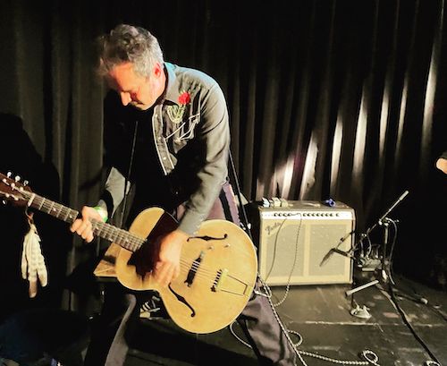 Nervio puro, en estado de gracia, que además le encanta lo que hace, dándole igual si la sala está llena o medio vacía, se exprime al máximo, dando el doscientos por cien, cosa que agradecimos silbando y gritando como locos. Una comunión perfecta, que obtuvo su premio, cuando a seis o siente canciones del final, se puso a funcionar la P.A izquierda, que había imitado a Harpo Marx desde el incicio.