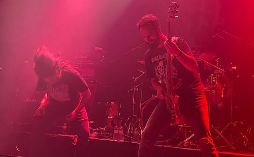 Abrieron la noche Morbid Flesh, banda de Sabadell que lleva dando guerra desde el 2007, año en que se formó con músicos que han militado en grupos como Insulters, Graveyard, Òsserp y Tort, entre otros. Si bien comenzaron su set con la sala a media entrada y el público poco participativo, se fueron quitando de encima en anquilosamiento e invirtieron la tendencia a medida que la olla se iba llenando. Su propuesta camina por los senderos del Death Metal Old School, con directrices sentenciadas por Entombed o Funebrarum, con un sonido menormente sólido y pesado. Especial mención al bajo de cinco cuerdas que parece un martillo pilón, echándose a cuestas la marcha del sonido.