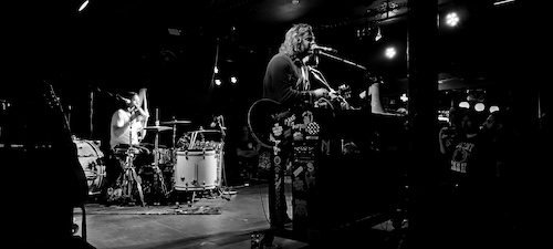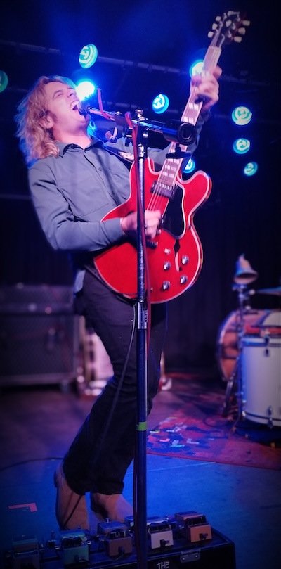 Daño hizo esta triple coincidencia, que duda cabe, y en la pequeña de Razzmatazz nos dimos cita más o menos la mitad de gente que cabe en la misma. A la banda le dio igual y a nosotros también, tras una pequeña intro empezaron a atronar los bombos XXL de Philipp, el percusionista, sobre los cuales desplegaba sus guitarrazos su partner in crime Fynn. «PCH Diamond» fue la elegida para comenzar un show en el que repasaron temas bien conocidos de su discografía, presentaron tres temas nuevos, aparte de su más reciente single «Masquerade», e hicieron un par de versiones («I feel you» de DEPECHE MODE y «State trooper» de BRUCE SPRINGSTEEN). Última parada de una gira española de siete fechas que parece, a juzgar por las fotos y videos que ha ido publicando la banda en redes, que les ha ido muy bien. No ha importado el hecho de no presentar disco nuevo ni de las muchas veces que han visitado nuestro territorio, la gente repite con ellos y el boca a boca funciona. Yo mismo, desde que les descubrí cuando vinieron de teloneros de MONSTER TRUCK hace unos años a la sala Bikini me dedico a propagar su palabra por el mundo y a recomendar a quien me quiera escuchar sus incendiarios directos. Su fórmula es sencilla, pero efectiva, Blues rock minimalista con una percusión espectacular, sudor, entrega máxima y volumen al 11. Todo esto no funcionaria si no tuviesen canciones, pero es que las tienen y muy buenas, como resistirse a cañonazos como «Seen those days», «I need that oooh» (dedicada al padre de Fynn, que les acompaña de gira conduciendo la furgoneta), «Howling wolf», «Your kisses burn like fire» o su ya clásico «Zero fucks given». Pero lo más interesante fue, para l@s que ya les hemos visto unas cuantas veces, el material nuevo que estrenaron, parece que están ampliando horizontes musicales como bien demostró esa épica «Black water», con Fynn alternando piano y guitarra, «Back to L. A.» o «Why mother why» acompañados de un coro gospel que sonó grabado. No me entusiasmaron los temas nuevos, la verdad, pero estoy deseando escucharlos en el contexto de un nuevo álbum para valorar este giro como es debido. Es comprensible que después de casi quince años como banda con un sonido tan definido hayan querido ampliar su paleta de influencias, a ver que resulta de todo esto.