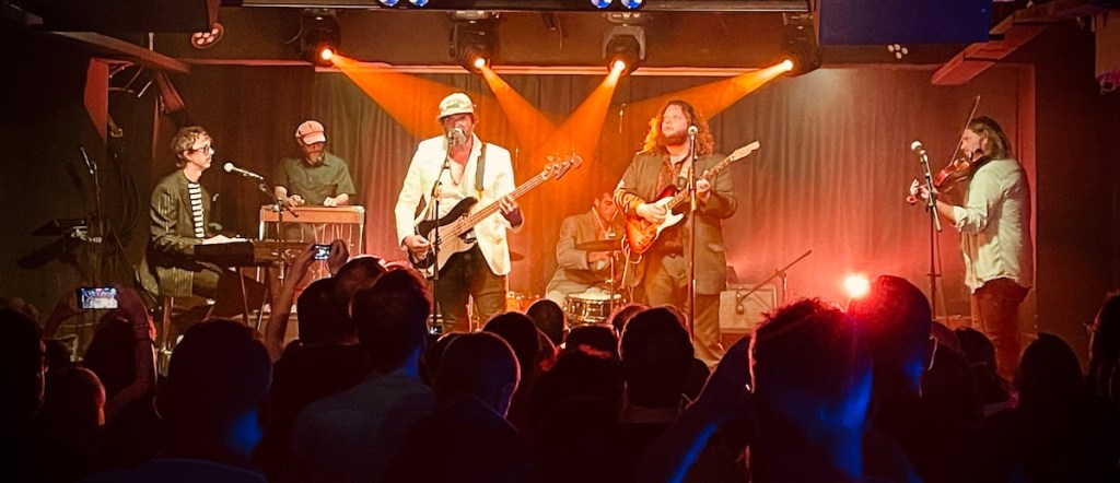 En Wolf fue todo lo contrario, puesta en escena sobria, una banda renovada, en la que sigue al frente su fundador y alma mater Joe Firstman, en un contexto más profesional, buen sonido, se escuchaba cada instrumento perfectamente y unas luces que les sentaban muy bien. Muy diferente asimismo la actitud de la banda con respecto a la última vez, concentrados en lo suyo y decididos a embrujarnos con su música. Fueron de menos a más, sin prisa, pero sin pausa, ganando en intensidad, con un timing ideal, casi sin darnos cuenta, llevaban cincuenta minutos de concierto. Todos funcionaban muy bien, mención especial para Lucca Soria, el guitarrista con barba de Amish, que sigue en la banda aportando su excelso gusto tocando la guitarra y el violín también cuando el tema lo requiere, mención y elogio asimismo para el batería que, a falta de percusión externa, se las arreglaba para sacar unos ritmos latinos tremendos con la caja. Se fueron hasta casi la hora antes de retirarse para regresar con uno de los mejores bises que he visto últimamente, nada de dos canciones para cumplir y hasta luego, media hora larga con la banda on fire, haciendo versiones de Dylan, de Springsteen, temas propios, improvisando y pasándolo genial, y nosotros también. Se creó la magia en ese bis, creedme. Menuda recta final, redimidos, por tanto, del bolo del 2022 CORDOVAS, y no queda más, sino recomendar los conciertos que les quedan por ofrecer, pues si mantienen el nivel exhibido la pasada noche en Wolf, os aseguro que vale la pena.