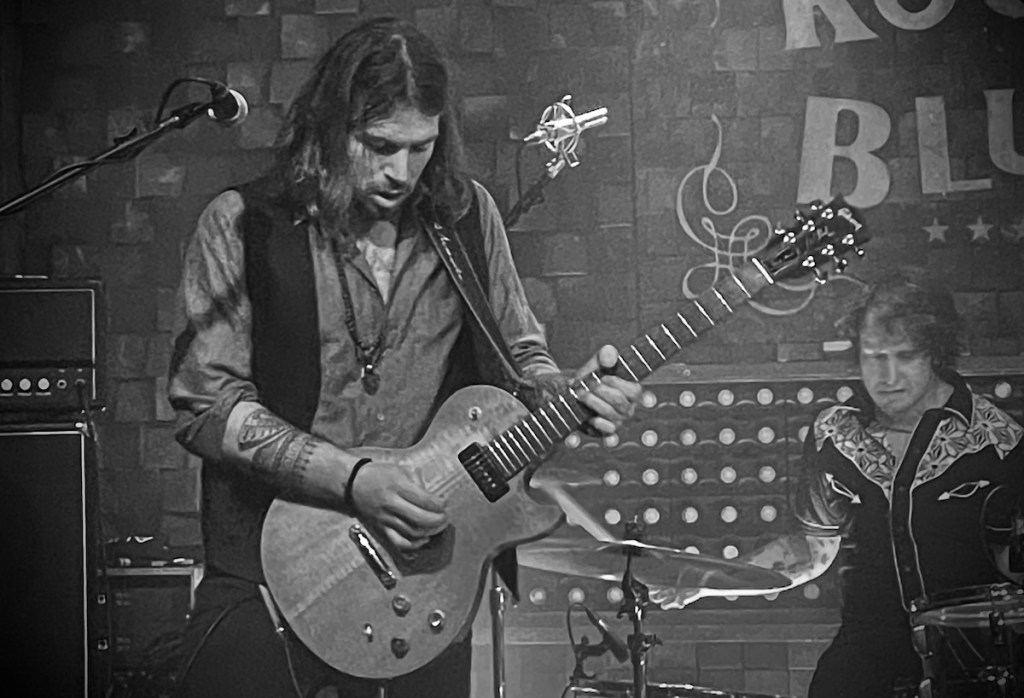 El concierto fue impecable, es más, diría que el mejor de todos los que he tenido el gusto de disfrutar de The Kleejoss Band, pero lo de Andrés, es para darle de comer aparte. Su maestría con la guitarra sobrevoló la noche con identidad propia, elevando todos y cada uno de los temas al glorioso podium de clásicos, suavizando la coyuntura cuando era necesario, alcanzando al desbocado Nacho, cuando este lo pedía, creando magia con el slide, pisando blues en ocasiones y rozando el hard en la mayoría de minutos. Repito, toda la banda estuvo sobrevolando la estratosfera, pero Andrés estaba en el espacio profundo, donde no hay gravedad que lo retenga al suelo. Un monstruo.