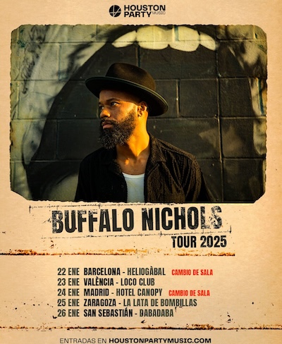 Barcelona y Madrid forman parte de la gira de debut de Buffalo Nichols en nuestro país, un repóquer de blues de primera categoría que también pasará por estas tres ciudades: València (el 23, Loco Club), Zaragoza (el 25, La Lata de Bombillas)y San Sebastián (el 26, Dabadaba). En todas estas actuaciones nos vendrá a presentar su segundo disco, “The Fatalist” (2023).
