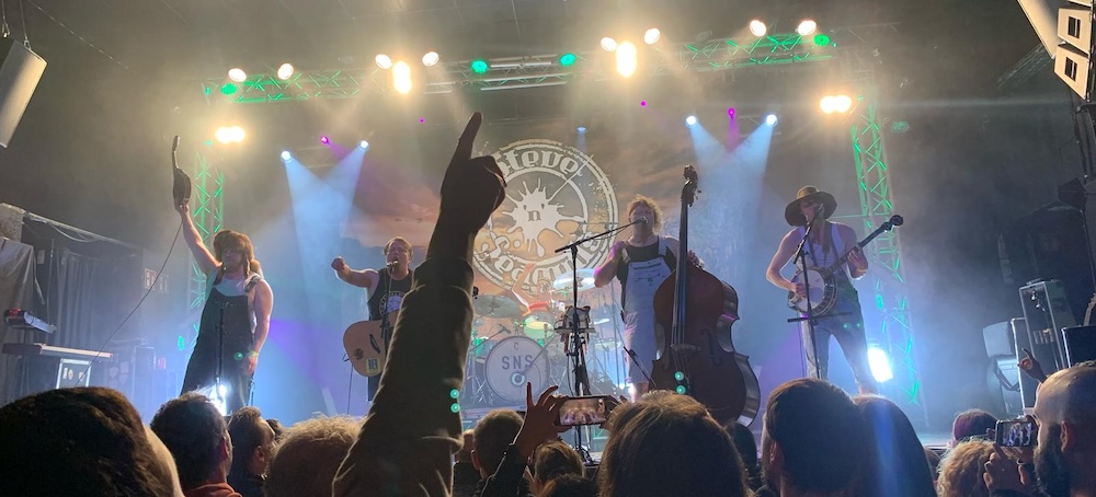 Día lluvioso y tristón, que no impidió que la Salamandra se llenara rozando el sold out, para ver a los finlandeses Steve’n’Seagulls. Unas chicas a nuestro lado se extrañaban de que apuntáramos su nacionalidad, puesto que apostaban que era como mínimo de Texas o una América más profunda. Esa es una de las señas de identidad de esta banda, su remarcado carácter americano, decantándose por un Hillbilly Bluegrasss contagioso y divertido. Siendo otro de sus puntos fuertes el amor por el heavy metal, que unía a la mayoría de los presentes, y el dedicarse en cuerpo y alma a descerrajar clásicos del metal, tamizándolos en una granja de puercos propiedad de unos recknecks asesinos.