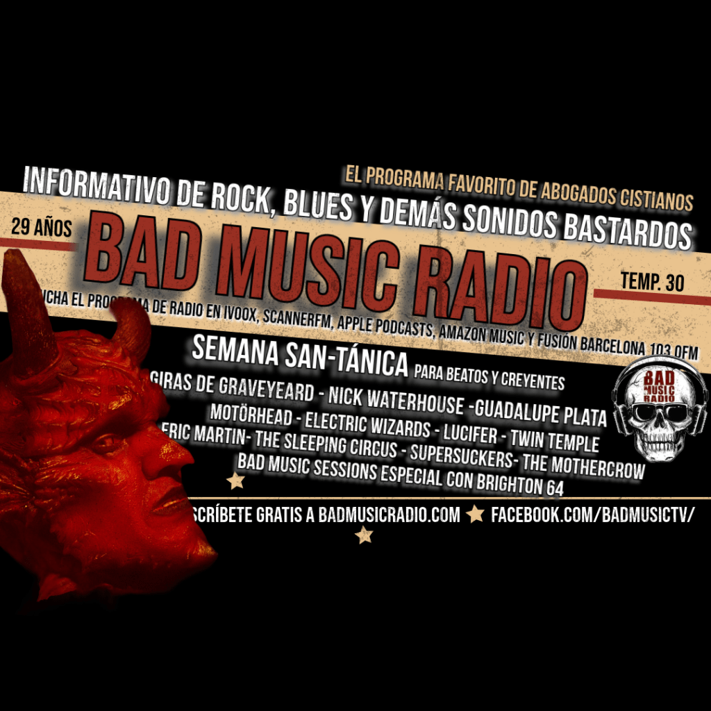 Ojo, que no olvidaremos los conciertos que siguen emergiendo por la geografía peninsular y nos alegran el cuerpo y espíritu. Además de comunicaros que tenemos en un futuro no muy lejano, el 30 de mayo, una Bad Music Session muy especial, con Brighton 64 de protagonista.