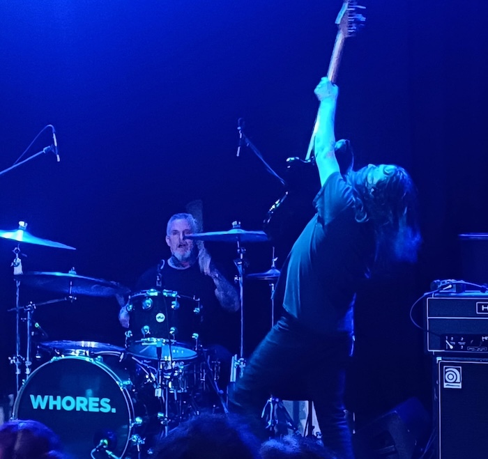 Lo de WHORES. hay que analizarlo desde otro prisma, pues eran la atracción principal del evento y el motivo por el que la gente se había comprado la entrada. El (mini) concierto fue fantástico, la banda de Atlanta práctica un Stoner Rock con muchos matices, y tienen un sonido muy poderoso. Tres músicos plenos de virtudes y la actitud correcta. Presentaban esa barbaridad de disco que es «War» (2024) y todo iba sobre ruedas, la banda descargando toda su furia y el público cabeceando, como es habitual en este tipo de conciertos. Hasta que, cuando llevaban cuarenta y cinco minutos (sí, han leído bien, tres cuartos de hora), al terminar una canción se retiraron con un breve adiós, se encendieron las luces de la sala y empezó a sonar la música de ambiente.