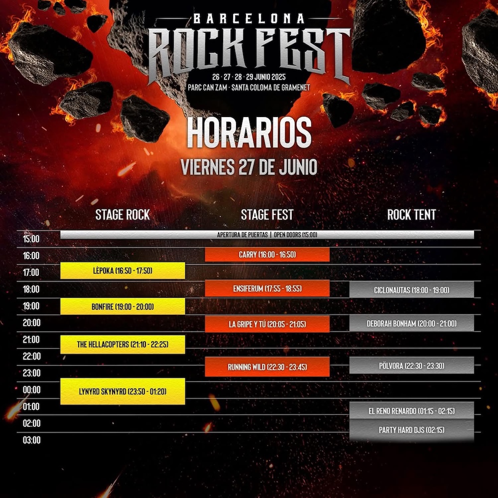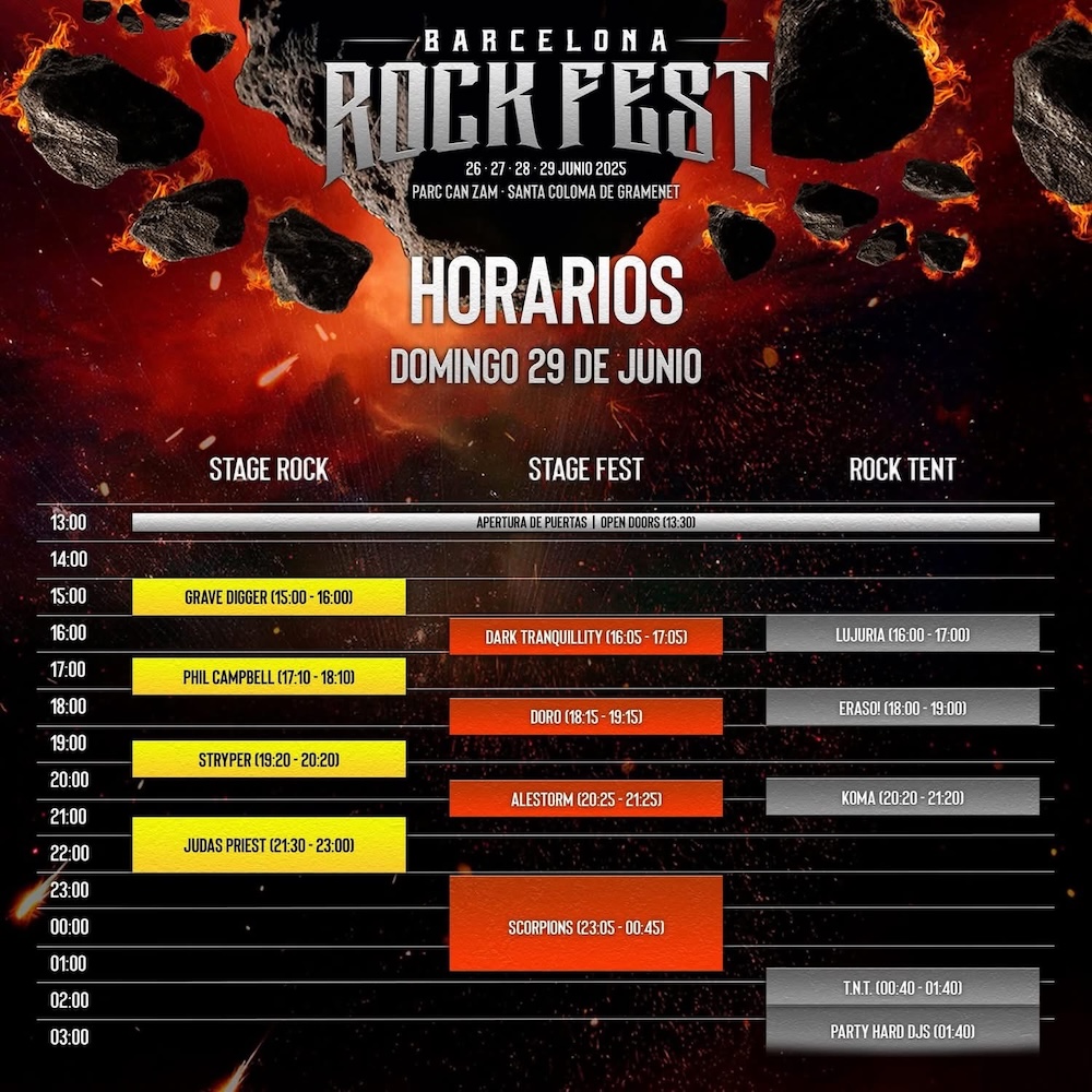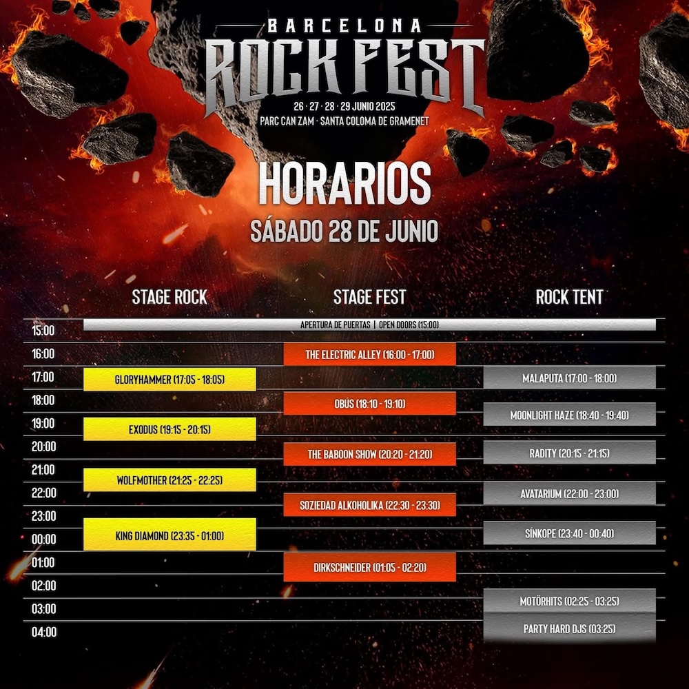 El Rock Fest ha publicado los horarios de la edición de este año, que se celebrará del 26 al 29 de junio en el Parc Can Zam de Santa Coloma de Gramenet. Aquí tenéis los horarios.
