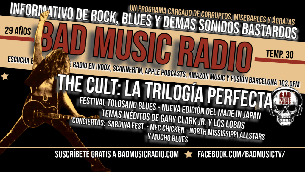 Tenemos preparado un especial sobre THE CULT: LA TRILOGÍA PERFECTA, de cara a su concierto del próximo día 27 de junio en el Poble Espanyol. Pero también hablaremos del Tolosand Blues de este año, del Sardina Fest., la visita de North Mississippi Allstars, escucharemos temas inéditos de Gary Clark Jr. y Los Lobos, más novedades de blues, blues y mucho blues y rock.