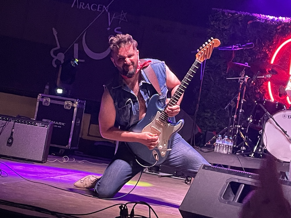 Pasadas las 22:30 de la noche comenzó la maratoniana jornada en la Plaza de Toros, donde se presentaba el guitarrista italiano Max Biondi y sus Blue Experience, con el aracenense Manu García al bajo y al catalán Eudald López a los parches de la batería. No acababa de llenarse el recinto, pero el público se entregó desde el principio al power trío, enganchado a los largos y experimentados solo de guitarra de Max, quien pese a su juventud demostró tener una gran técnica con el instrumento, sorprendiendo con una poderosa voz rasposa. Su set list estuvo marcado por la presentación de su segundo álbum de próxima edición, Blue Experience, y un ramillete de estupendas versiones entre las que destacó «Voodoo Child» de Hendrix, pero por la vía Steve Ray Vaughan. Gran inicio de noche, que terminó con la plaza prácticamente llena.