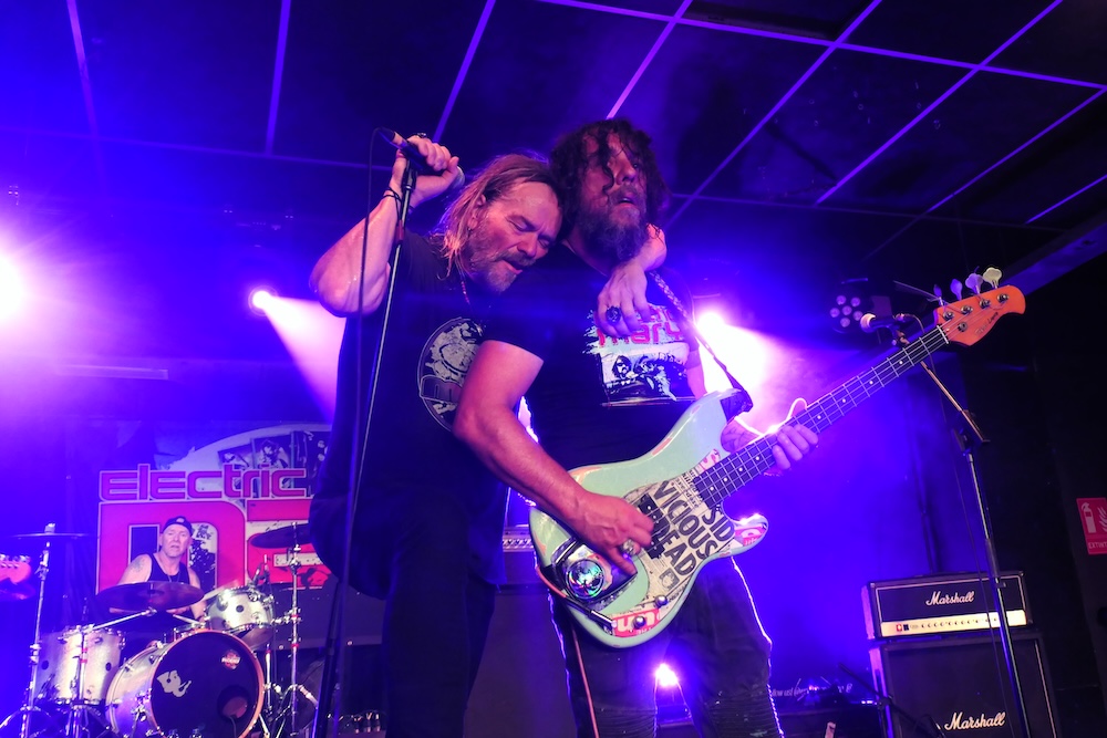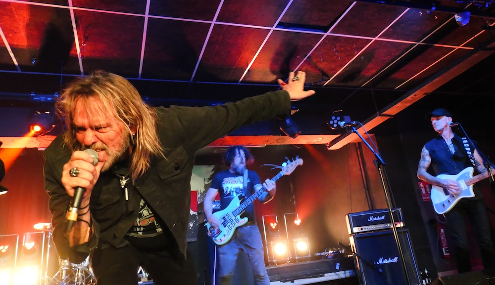 Empezaron con el último sencillo publicado en octubre del año pasado y que se antojaba como el adelanto de un nuevo álbum pero terminó siendo la antesala de la despedida, un atronador «Shaun» (en memoria del fallecido Shaun Gardener amigo y coescritor de las letras de la banda) con una fuerza tremenda en los riffs de guitarra a cargo de Pete Robinson y Simon Hosford (que substituía la baja del carismático zurdo Brett Wood) con buena e impecable ejecución, no en vano tiene una amplia experiencia como músico de sesión. Tanto la batería de Spyder y en especial el bajo Alex Raunjak sonaban de una intensidad atronadora y es que la composición de la música del tema corrió de su cargo (por lo que nos dijo Rusty al terminar el concierto) y él se encargó de la letra. Por cierto, Rusty Brown estaba pletórico y demostró tener la voz en mejor estado que en su última visita y también había mejorado mucho en forma física. El buen sonido de la sala ayudó desde el principio a disfrutar de la energía que se volcaba desde el escenario.
