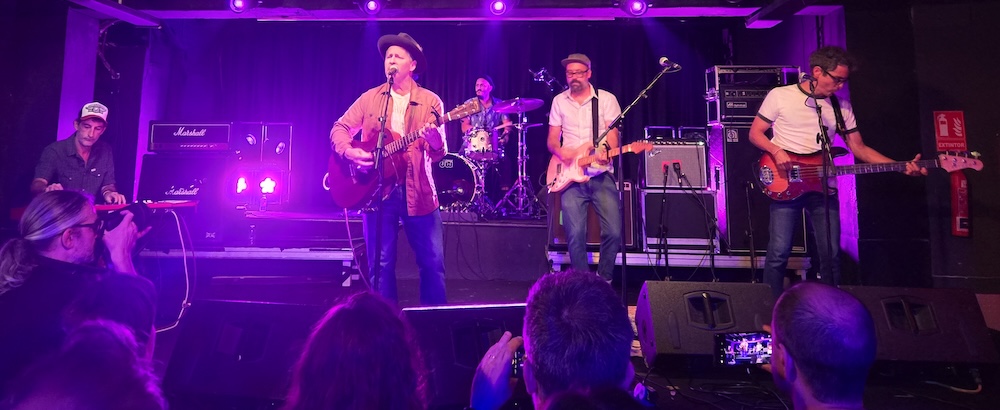 Puntuales a las ocho y media hicieron su aparición Marc Rockenberg y su banda, que incluye al ex FUZZ FORWARD Edko Fuzz al bajo y coros, además de Nico a la guitarra y Xavi a la batería. Nada más salir Marc nos advirtió que llevaba una semana resfriado y que iba a hacer todo lo que pudiera. Aun con este contratiempo dieron un bolo más que correcto y muy fluido mientras la sala iba cogiendo ambiente. En media hora les dio tiempo a colocar hasta ocho temas, entre ellos «A way out» de su recién publicado «Go on» (2025), «Looking all around», un tema nuevo titulado, si escuché bien, «Hope to see you» y esos dos temazos que son «Million times» y «Down the line», con unos coros geniales de Edko. Se despidieron con un conato de versión del «You really got me» de los KINKS y le dejaron el escenario bien caldeado a Josh Rouse y su banda.