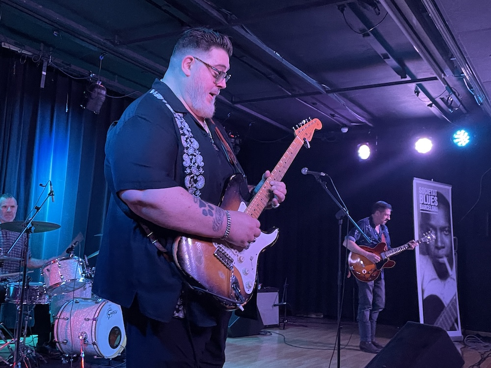 El repertorio fue muy variado y no se centró en el Chicago Blues como muchos esperábamos, viajando en una amalgama de sonidos que tuvieron, algunas de cal y otras de arena. El set list que mandó para que su side band se aprendiera contenía doce temas y todos ellos versiones, aunque es cierto que algunas están grabadas en su discografía. Comenzando con un retazo de Texas Blues con «Huckle Boogie» de Pee Wee Crayton o rescatando el clásico de Robert Johnson «Rambling on my mind», que ya grabó junto Dennis Wruenling, a despachar el bolo con un arranque de furia de Chicago, «Feels So Bad» de Little Milton que me recordó a la versión de Junior Kimbrough, el blues soul «Tramp» de Jimmy Mccraklin y Lowell Fulson, pero en versión de su adorado Buddy Guy, igual que con «Stone Crazy» del propio Guy.