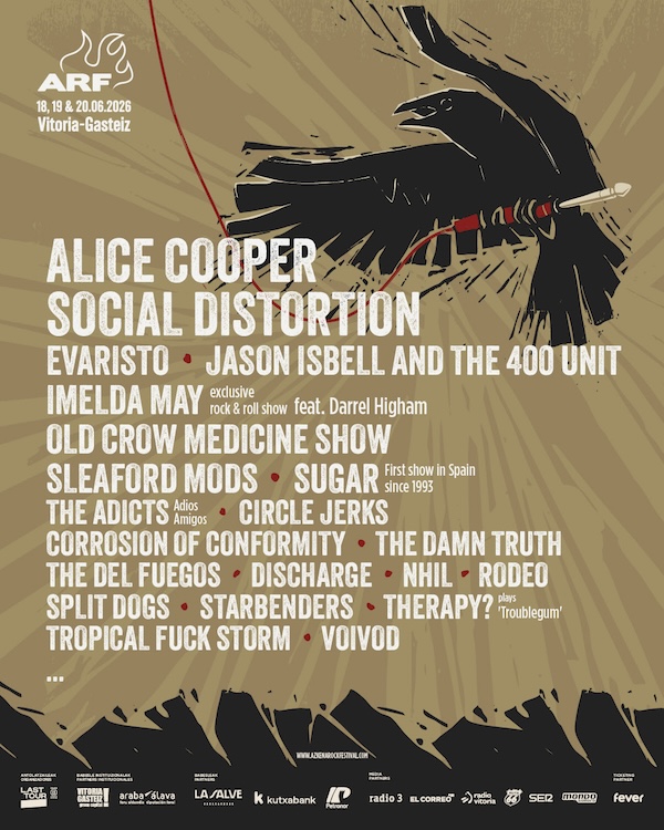 Alice Cooper, Social Distortion, Evaristo,  Jason Isbell & the 400 Unit, Imelda May en show exclusivo respaldada por el guitarrista Darrel Highman, Old Crow Medicine Show, Sleaford Mods, SUGAR, The Adicts y más dan el pistoletazo de salida a una nueva edición de ARF.
