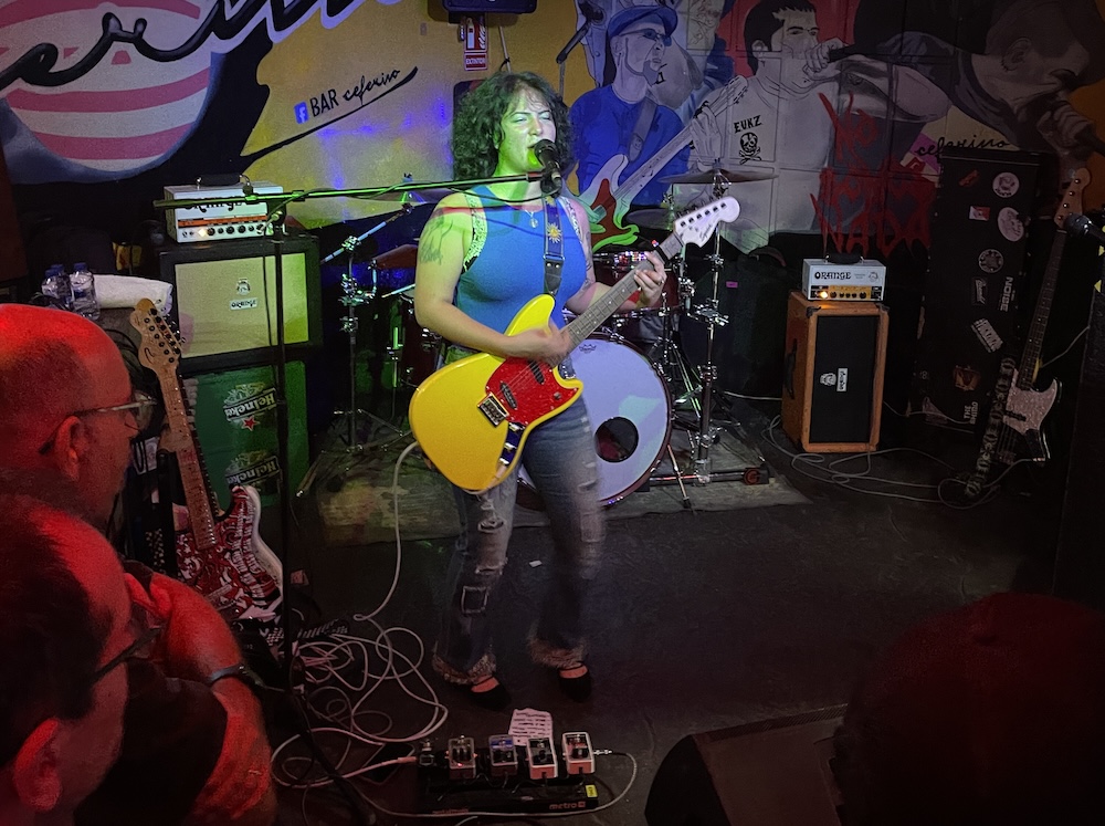 Lo verdaderamente especial del concierto fue la aureola de autenticidad que desprendieron en el Ceferino. Con una entrada pobre, que provocaba que el público se posicionara en un círculo extraño y alejado del entarimado, frío, gélido y deprimente, pero la fuerza desprendida por Lord Bishop, su postura y temple, los saltos de Pika que no paraba de bailar, gritar y arengar al público, más el impresionante don de Duda en las baquetas que temblábamos cada vez que pisaba en pie de bombo, consiguió que a medio tema estuviéramos todos prácticamente encima de ellos. La sensación de estar viviendo uno de esos momentos sinceros y sin aditivos, banda y público entregados a la ceremonia de vivir la música, sin importar si somos pocos, sin prisas porque acabe, pero con ansia y velocidad por esnifar todo lo volcado desde los amplificadores, disfrutando de esa guitarra tan psicodélica que gasta Lord y que se la hizo un lutier barcelonés que estaba en la misma sala de nombre Jordi, Saraya en el puesto de merchan cantando como si estuviera viendo el concierto por primera vez… todo lo expuesto significó una noche sorprendente, divertida, especial.