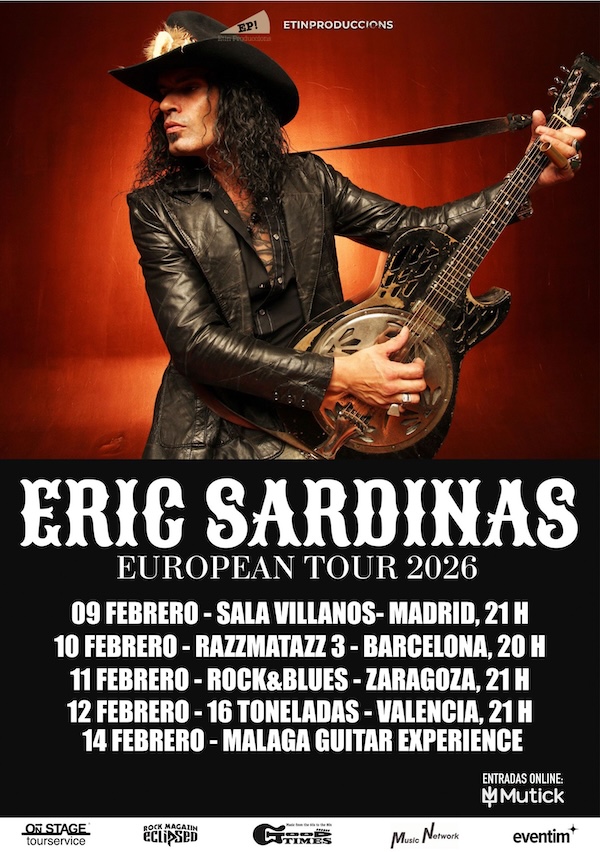 Etin Produccions anuncia cinco fechas el próximo mes de febrero de Eric Sardinas por la Península, enmarcadas en su European Tour 2026.