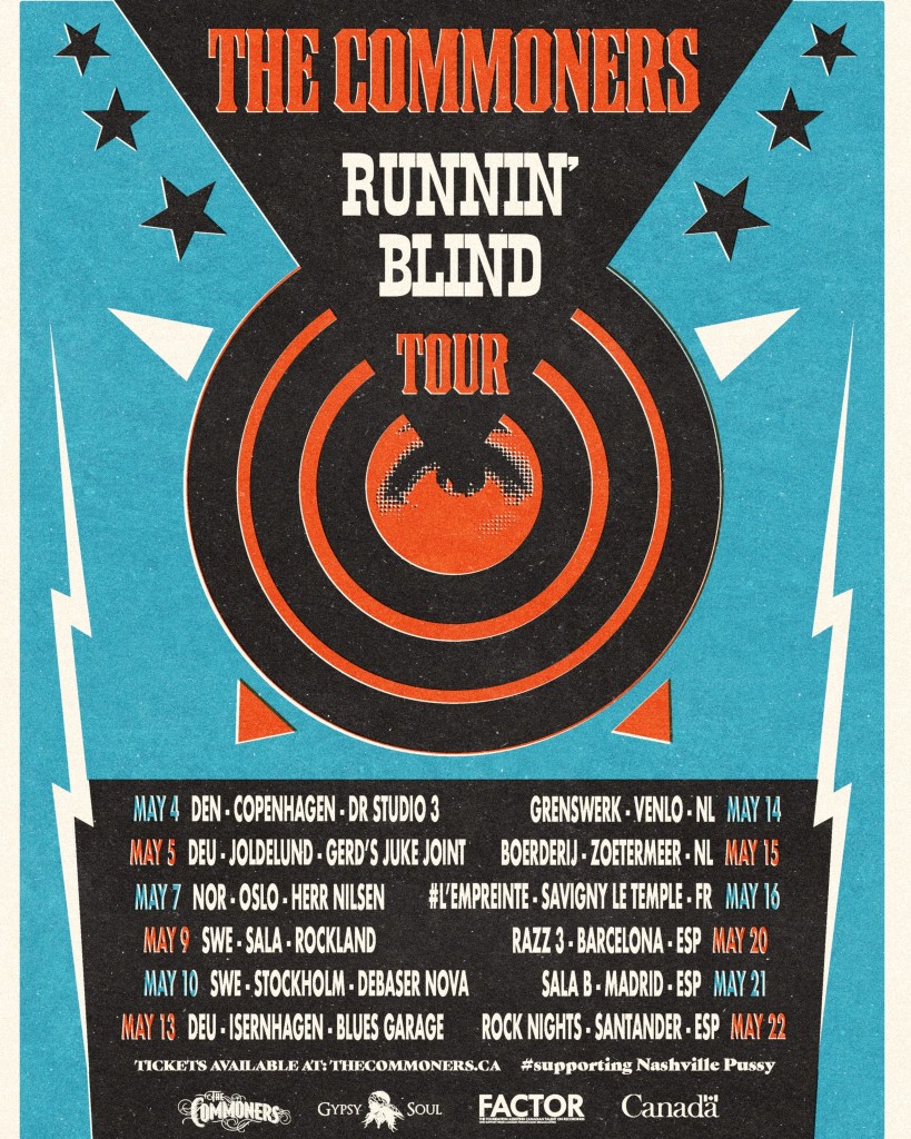 La banda canadiense The Commoners han anunciado nueva gira europea bajo el nombre de Running Blind Tour, incluyendo tres noches en nuestro país.