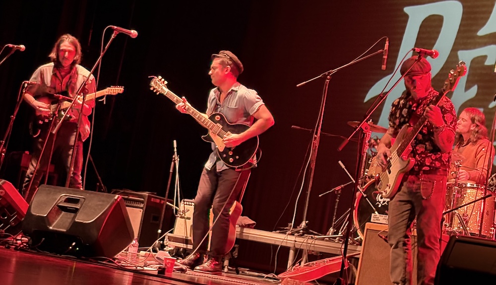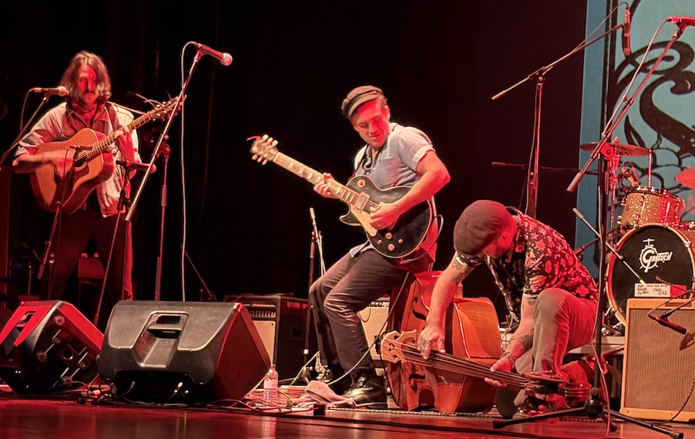 Esta vez el escenario era magnífico. Iluminado en rojo fuego y presidido por el cartel del festival. Tras una breve presentación a cargo de Ángel Elvira, aparecen Las Balas Perdidas sobre las tablas. Adaptados al formato teatral, plantean la velada como una obra de arte en tres actos. Arrancan con una preciosa versión de su tema 13/14, tranquila y arrastrada, como la voz de Agustín: a medio metro del micrófono, recitando frases dolientes como un tango y con licks de guitarra zurdos a lo Albert King. Ahí reside parte de la magia del grupo: Blues y música tradicional de raíces negras cantadas en español.