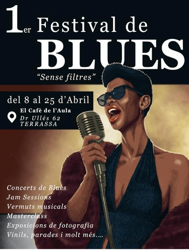 Del 8 al 25 de abril de 2026, Terrassa celebrará la primera edición del Festival de Blues de Terrassa, una nueva propuesta cultural dedicada íntegramente en El Café del Aula Jazz Club, un espacio de referencia para la música en directo en la ciudad. El festival se iniciará con la inauguración y la exposición del artista plástico y músico Diego Quezada, «Ellas. Un gesto, un homenaje», un proyecto artístico dedicado a las grandes voces femeninas del Blues, Soul, Funk y Jazz. Una propuesta que establece un diálogo entre música e imagen y que abre una programación que combina conciertos, jam sessions, actividades formativas y propuestas de baile, con el objetivo de ofrecer una visión amplia y contemporánea del blues.