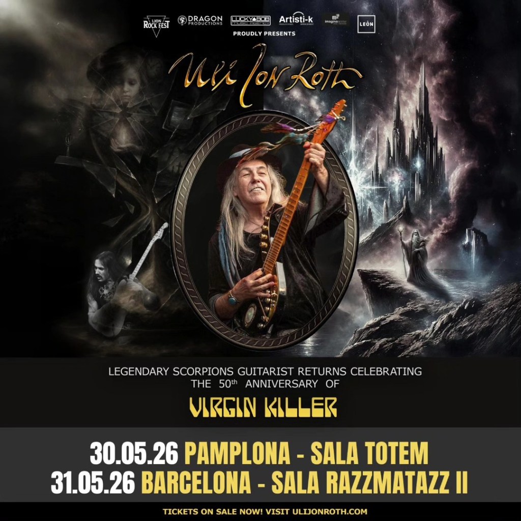 Organizado por el festival Lion Rock Fest y la agencia Artisti K Management, el guitarrista Uli Jon Roth vuelve a los escenarios españoles para conmemorar el 50º aniversario de Virgin Killer, cuarto álbum de estudio de Scorpions y uno de los trabajos más influyentes de la etapa clásica de la banda alemana con Roth al frente.