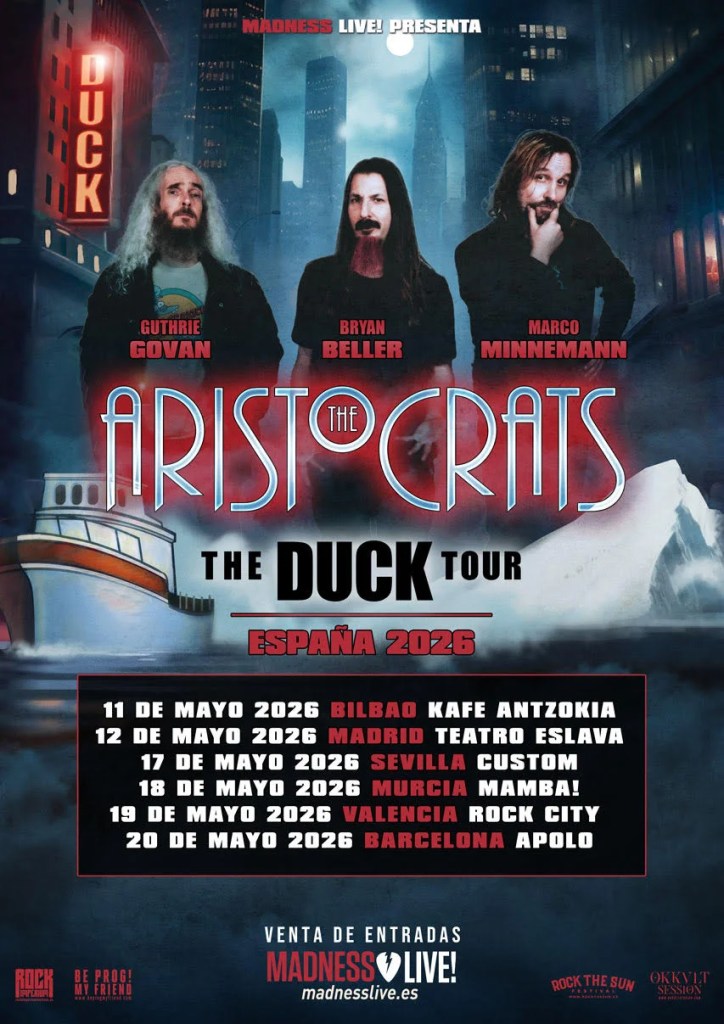 El grupo instrumental más irreverente y virtuoso del rock-fusión, The Aristocrats, aterriza en nuestro país con su tour europeo. El trío formado por Guthrie Govan (guitarra), Bryan Beller (bajo) y Marco Minnemann (batería) presentará en directo su quinto y más ambicioso trabajo de estudio, Duck, impresionante obra conceptual lanzada en febrero de 2024.